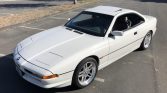 The exterior is finished in Alpine White (300) and features pop-up headlights, fog lights, a sunroof, a rear decklid spoiler, window tint, quad exhaust outlets, and a replacement front lower spoiler. Cracked paint is present on the front bumper, a scratch is noted on the driver-side door, and a dent can be seen near the fuel door. The Carfax report lists “severe damage” to the rear of the car in March 2008 as a result of an aLident with another vehicle. The seller notes that the front and rear bumpers were replaced after the incident. Paint-depth readings are provided in the photo gallery below.