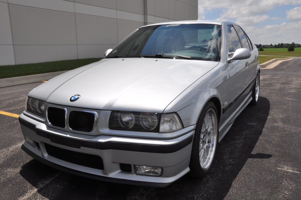 The 3.2-liter S52 inline-six has been modified with a Turner Motorsports Stage 2 tuning kit consisting of an aFe cold-air intake, 24-lb fuel injectors, a Porsche mass air flow sensor, and Shark Injector engine control software. Recent maintenance is said to have included an oil change, replacement of the fuel sending unit and gasket, and installation of an AGM battery and an aFe air filter. Additional under-hood modifications include a BimmerWorld throttle body boot, CFS Plus high-capacity radiator, BimmerWorld 16″ SPAL puller fan, and a Stewart high-performance water pump. Removed factory parts are included in the sale.