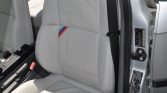 The cabin features seats upholstered in gray leather with matching door panel inserts. Amenities include dual-zone automatic climate control, heated front seats, cruise control, an onboard computer, a BMW CD43 Business CD stereo, embroidered M3 floor mats, aftermarket pedals, and a UUC Motorsports short-shift kit with an aftermarket shift knob. The seller reports that the headliner has been replaced under current ownership.