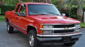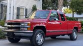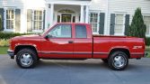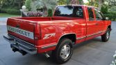 This 1997 Chevrolet Silverado K1500 is an extended-cab 4×4 example finished in red over gray cloth, and it is powered by a 5.7-liter V8 mated to a four-speed automatic transmission and a dual-range transfer case. Equipment includes the Z71 Off-Road Package, a receiver hitch, chrome bumpers, cruise control, air conditioning, 16″ alloy wheels, a power-adjustable driver seat, and a factory cassette/CD stereo. The truck spent time in North Carolina, Virginia, Arizona, and Georgia before it was acquired by…