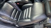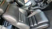The cabin features black leather upholstery on the front bucket seats with a matching dashboard, center console, door panels, and carpets. Equipment includes air conditioning, cruise control, and a Mach 460 AM/FM/CD/cassette stereo.
