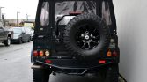 Black-finished 16″ alloy wheels wear Atturo TrailBlazer tires measuring 285/75, and a matching spare is mounted at the rear. The lifted suspension features Bilstein shocks.