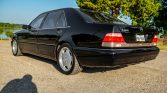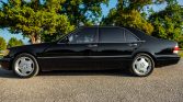 This 1997 Mercedes-Benz S600 is powered by a 6.0-liter V12 paired with a five-speed automatic transmission, and it is finished in black over matching leather. Equipment includes 18″ AMG Monoblock wheels, adaptive dampers, xenon headlights, a glass sunroof, tinted rear windows, heated seats, automatic climate control, a period carphone, an electric rear sunshade, and a factory stereo with an aftermarket Bluetooth adapter. Work performed since 2018 has included an oil change, refinishing of the wheels and several…