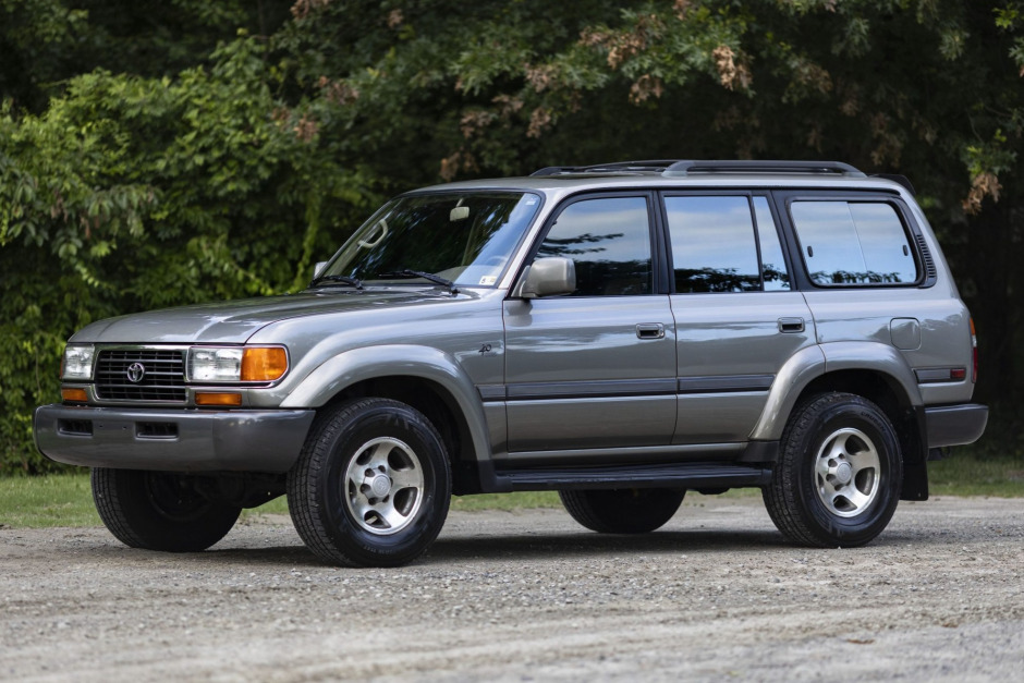 This 1997 Toyota Land Cruiser is finished in Antique Sage Pearl over two-tone tan and brown leather and is powered by a 4.5-liter inline-six linked with a four-speed automatic transmission, a dual-range transfer case, and a locking center differential. Additional equipment includes a sunroof, automatic climate control, a nine-speaker AM/FM/CD cassette stereo, power-adjustable front seats, roof rails, and 16″ alloy wheels. Work performed since 2019 is said to have included replacing the front crankshaft seal, oil pump seal, and power steering pump as well as the front wheel bearings and front inner differential seals.