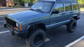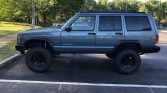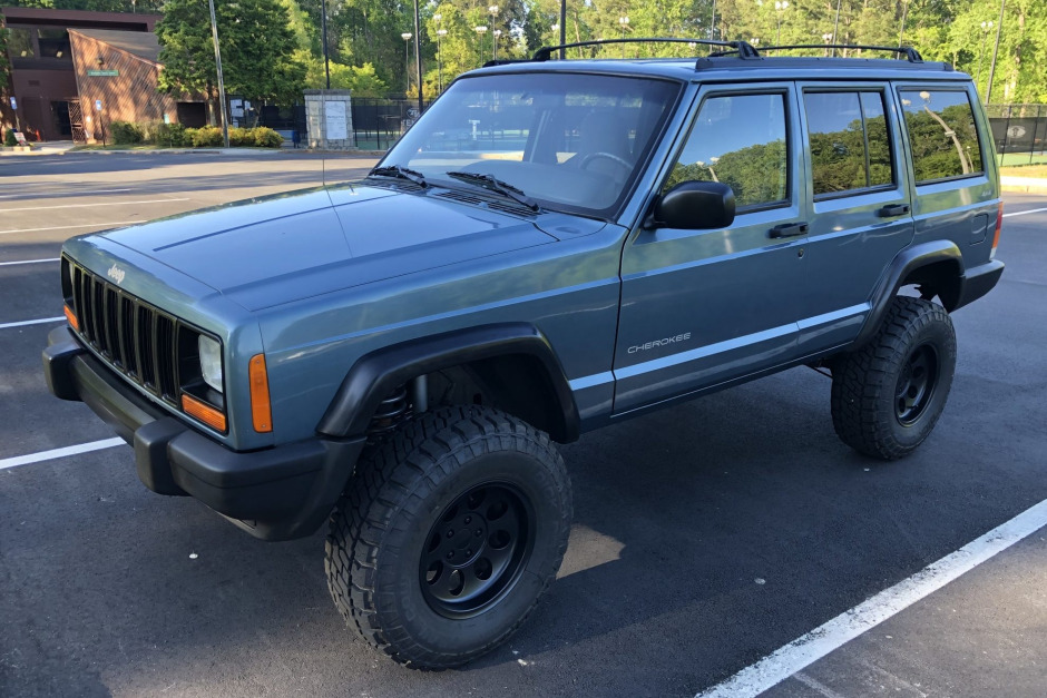 This 1998 Jeep Cherokee Sport is finished in Gunmetal Pearl Coat over gray cloth and powered by a 4.0-liter inline-six paired with a five-speed manual transmission and a dual-range transfer case. The truck was first registered in Virginia and spent time in Florida before being purchased by the seller in South Carolina and subsequently refurbished. Engine modifications include a Trail Head Off-Road cowl induction kit, a 1999-specification intake manifold, a 63mm throttle body, a Flowmaster muffler, and RT Off-Road headers. The suspension system features a Rubicon Express 3.5″ lift, an Old Man Emu steering stabilizer, and Teraflex ball joints. Additional equipment includes a Kenwood stereo paired with Polk Audio speakers, air conditioning, power aLessories, black wheel arch flares, roof rails with cross bars, and 15″ Quadratec wheels. Service performed under current ownership also included installation of a replacement rear driveshaft, catalytic converter, and engine mounts along with fluid changes.