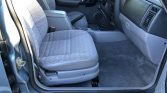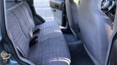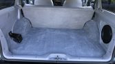 The cabin features front bucket seats and a rear bench upholstered in patterned gray cloth along with a two-tone dashboard and door panels. Air conditioning and power aLessories were equipped from the factory, and additional equipment includes WeatherTech floor mats, LED cabin lights, and a Bluetooth-capable Kenwood stereo paired with a Zapco amplifier, Polk Audio front and rear speakers, and a 10″ subwoofer. The power aLessory control modules in the front doors have been replaced along with the carpets.