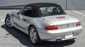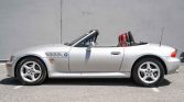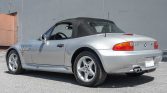 This 1999 BMW Z3 is finished in Arctic Silver Metallic over Tanin Red leather, and it is powered by a 2.8-liter inline-six paired with a five-speed manual transmission and a limited-slip differential. Equipment includes a power-retractable black soft top, front fog lights, heated and power-adjustable seats, cruise control, air conditioning, and a BMW Business CD stereo with Harman Kardon audio.