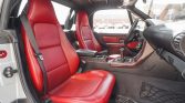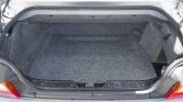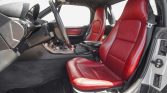 The cabin features Tanin Red (Q2TD) Oregon leather upholstery along with black carpets that are protected by rubber floor mats, while wood veneers aLent the center console and shifter. Amenities include heated and power-adjustable seats, air conditioning, cruise control, a locking glovebox, a cargo net, and a BMW Business CD stereo with Harman Kardon audio. Discoloration from wear is visible on the outer bolster of the driver’s seat.