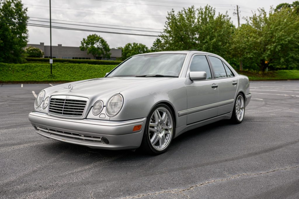 This 1999 Mercedes-Benz E55 AMG was first registered in Pennsylvania and spent much of its life in Georgia, where it was acquired by the seller in 2005. The car is finished in Brilliant Silver Metallic over Blueberry leather and is powered by a 5.4-liter V8 paired with a five-speed automatic transmission. Equipment includes aftermarket multi-piece 19” wheels, fog lights, xenon headlights, rain-sensing wipers, a sunroof, a rear window sunshade, heated and power-adjustable front seats, and a trunk-mounted…