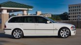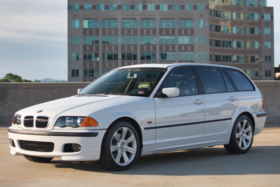 This 2000 BMW 323i Sport Wagon is finished in white over beige leather, and power is provided by a 2.5-liter M52 inline-six paired with a retrofitted six-speed manual transmission. Equipment includes window tint, automatic climate control, and a BMW Business CD stereo as well as 17″ allow wheels and heated front Sport seats as part of the Sport package.