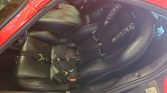The cabin features bucket seats upholstered in black leather along with ACR-branded racing harnesses and a matching dashboard, door panels, center console, and carpets. Additional equipment includes power windows, air conditioning, an Alpine CD stereo with a 200-watt amplifier, and dual airbags.
