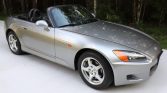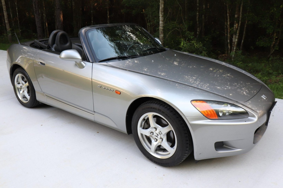 This 2000 Honda S2000 was delivered new to Twin City Motors in Port Arthur, Texas and was acquired by the seller in January 2021 from the original owner. The car is finished in silver over black leather and is powered by a 2.0-liter VTEC inline-four paired with a six-speed manual transmission and a limited-slip differential. Additional equipment includes a black convertible top, five-spoke 16″ wheels, cruise control, air conditioning, and a factory CD stereo. Service in early 2021 following several years of storage is said to have included an oil change as well as replacement of the tires, spark plugs, battery, and serpentine belt.