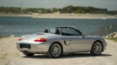 This 2000 Porsche Boxster is finished in Arctic Silver Metallic over black leather and powered by a 2.7-liter flat-six paired with a five-speed manual transaxle. Equipment includes a black soft top, 18″ Sport Design wheels, automatic climate control, cruise control, a wind deflector, stainless-steel and aluminum trim accents, and Porsche Communication Management (PCM) with navigation.