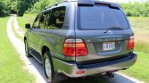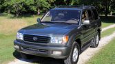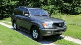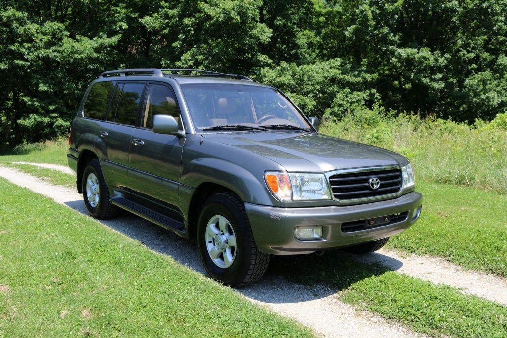 This 2000 Toyota Land Cruiser is finished in Riverock Green Mica over Chateau leather and is powered by a 4.7-liter V8 paired with a four-speed automatic transmission, a dual-range transfer case, and a locking center differential. Additional equipment includes the Convenience Package, fog lights, running boards, a glass sunroof, a roof rack, heated front seats, automatic climate control, third-row seating, and a cassette/CD stereo. The truck spent time in California, Idaho, and Ohio before it was acquired…
