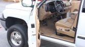 This 2001 Dodge Ram 2500 Laramie SLT Plus is a Quad Cab 4×4 example that was reportedly purchased new by the seller’s brother from Zangara Dodge of Albuquerque, New Mexico. The truck is finished in white over tan leather and is powered by a high-output 5.9-liter Cummins turbodiesel inline-six paired with a six-speed manual transmission, a dual-range transfer case, and a limited-slip rear differential. Equipment includes heated power-adjustable front seats, an aftermarket trailer brake controller, a backup camera, a color-matching camper shell, power windows and locks, air conditioning, cruise control, and an AM/FM/cassette/CD stereo.
