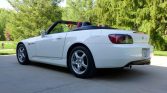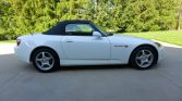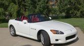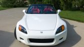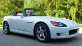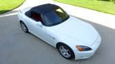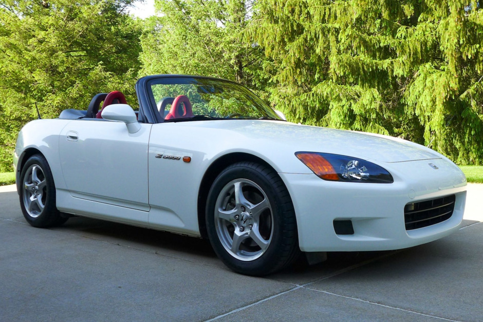 This 2001 Honda S2000 was purchased new by the seller in early 2002 from Brighton Honda of Brighton, Michigan, and it is finished in white over red leather. The car is powered by a 2.0-liter VTEC inline-four paired with a six-speed manual transmission and a limited-slip differential. Additional equipment includes 16″ wheels, a power-operated black soft top, an AM/FM/CD stereo, air conditioning, power windows, power door locks, and cruise control. The vehicle was serviced in May 2021 with an inspection and brake-fluid flush.
