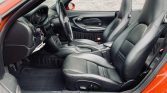 The cabin features seats upholstered in black leather with matching door panels and carpets. Equipment includes power-adjustable seats, cruise control, automatic climate control, a JVC Bluetooth stereo, the Technic Package, Porsche-branded floor mats, and power windows, locks, and mirrors.