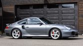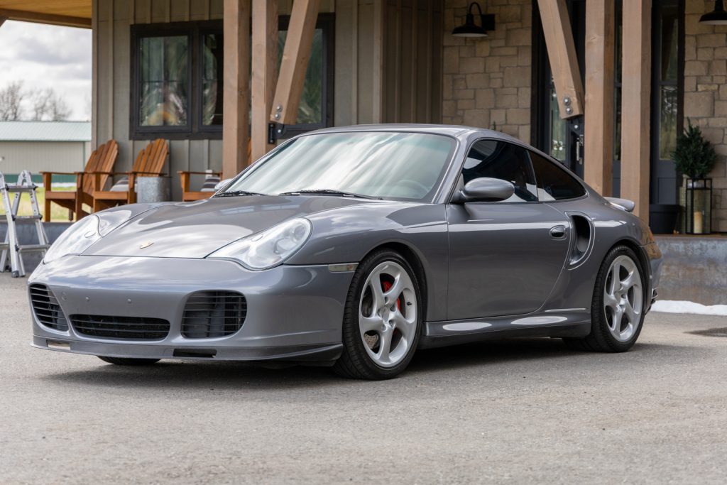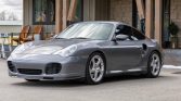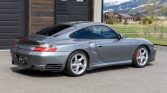 This 2001 Porsche 911 Turbo coupe is finished in Seal Grey Metallic over black leather and powered by a twin-turbocharged 3.6L flat-six paired with a six-speed manual transaxle and all-wheel drive. Equipment includes 18″ Turbo Twist wheels and heated power-adjustable front seats, while modifications are said to include a RUF exhaust system, Ultimate Motorwerks engine-management software, Öhlins coilover suspension, and a Rennkit eRam rear spoiler conversion. The car was first registered in Washington and remained in the state prior to the seller’s acquisition and subsequent relocation to Montana in May 2016, and it now has 63k miles.