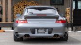 This 2001 Porsche 911 Turbo coupe is finished in Seal Grey Metallic over black leather and powered by a twin-turbocharged 3.6L flat-six paired with a six-speed manual transaxle and all-wheel drive. Equipment includes 18″ Turbo Twist wheels and heated power-adjustable front seats, while modifications are said to include a RUF exhaust system, Ultimate Motorwerks engine-management software, Öhlins coilover suspension, and a Rennkit eRam rear spoiler conversion. The car was first registered in Washington and remained in the…