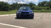 The 17” XXR wheels are mounted with 245/40 Toyo Proxes T1 Sport tires. Stopping power is provided by four-wheel discs, and the car rides lower than stock on Eibach springs and KYB shocks. The seller reports a whining noise when turning.