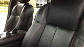 The cabin features Warm Charcoal leather seats with contrasting red stitching along with Birdseye maple trim on the dashboard, center console, and door panels. Amenities include power-adjustable front seats, automatic climate control, cruise control, and a factory Alpine stereo with a trunk-mounted CD changer.