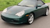 This 2002 Porsche 911 Carrera 4 cabriolet is finished in green over tan leather and is powered by a 3.6-liter flat-six mated to a six-speed manual transaxle and all-wheel drive. Equipment includes 18″ Carrera classic wheels, a power-operated black soft top, the Advanced Technic package, the Design package, bi-xenon headlights, heated and power-adjustable seats, automatic climate control, park assist, and a Bose Sound System. The car was first registered in Maine and later relocated to Florida where it was acquired by the seller in March 2021.