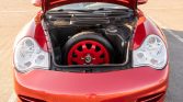 This 2002 Porsche 911 Carrera cabriolet was purchased new by the seller from Stevens Creek Porsche of San Jose, California, and has remained in California since. It is finished in Orient Red Metallic over Graphite Gray leather and is powered by a replacement 3.6L flat-six mated to a six-speed manual transaxle. The car features a power-operated gray convertible top, a body-color removable hardtop, 18″ alloy wheels, bi-xenon headlamps, a speed-activated rear spoiler, a Becker/Porsche Traffic Pro stereo with navigation, and automatic climate control. Modifications include an ROW 030 sport suspension system, a Tequipment Porsche Sport Exhaust system, a Bluetooth stereo module, and a B&M GT3-style short shifter.
