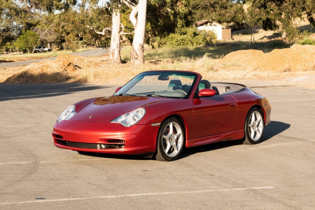 This 2002 Porsche 911 Carrera cabriolet was purchased new by the seller from Stevens Creek Porsche of San Jose, California, and has remained in California since. It is finished in Orient Red Metallic over Graphite Gray leather and is powered by a replacement 3.6L flat-six mated to a six-speed manual transaxle. The car features a power-operated gray convertible top, a body-color removable hardtop, 18″ alloy wheels, bi-xenon headlamps, a speed-activated rear spoiler, a Becker/Porsche Traffic Pro stereo…
