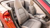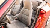 Optional five-spoke 18″ alloy wheels wear full-color Porsche-crest center caps and are wrapped in Michelin Pilot Sport N3 tires that show 2017 date codes. Stopping power is provided by red four-piston brake calipers paired with cross-drilled rotors at each corner, and a brake fluid flush was performed in October 2020. An ROW M030 sport suspension kit has been added, which lowered the ride height by approximately 10mm. The car is equipped with Porsche Stability Management, which can be turned off via a button alongside the climate controls.