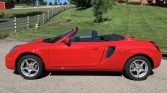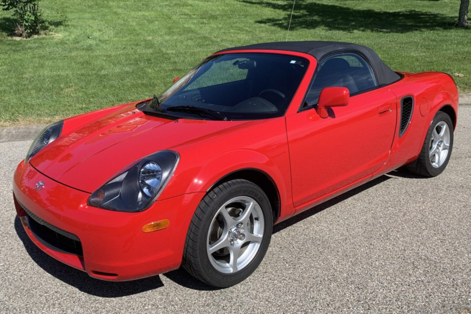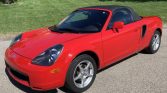 This 2002 Toyota MR2 Spyder is finished in red over black cloth and powered by a 1.8-liter inline-four paired with a five-speed manual transaxle. Equipment includes a black soft top, 15″ five-spoke wheels, air conditioning, power windows, a factory CD stereo, an AEM cold-air intake, and a Magnaflow exhaust muffler. The car was first registered in Pennsylvania and later spent time in Arizona and Ohio before its recent acquisition by the selling dealer.