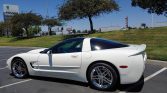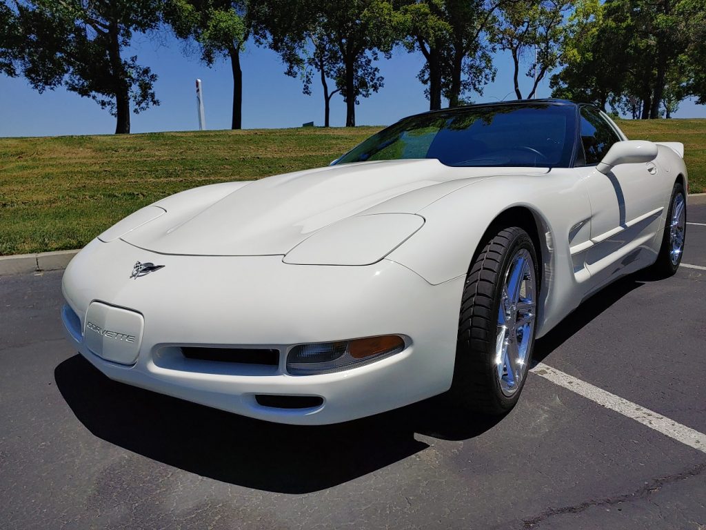 This 2003 Chevrolet Corvette coupe is finished in white over black and is powered by a 5.7-liter LS1 V8 paired with a six-speed manual transaxle and a limited-slip differential. Modifications include a Lingenfelter supercharger kit, a Borla exhaust system, chrome wheels, Baer EradiSpeed brake rotors, and a roll cage. Factory equipment includes remote keyless entry, a removable roof panel, Bose speakers, and dual-zone climate control. The car was sold new by Danbury Chevrolet in Connecticut and was recently acquired by the seller.