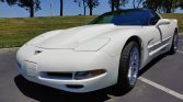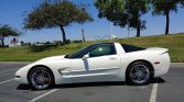 This 2003 Chevrolet Corvette coupe is finished in white over black and is powered by a 5.7-liter LS1 V8 paired with a six-speed manual transaxle and a limited-slip differential. Modifications include a Lingenfelter supercharger kit, a Borla exhaust system, chrome wheels, Baer EradiSpeed brake rotors, and a roll cage. Factory equipment includes remote keyless entry, a removable roof panel, Bose speakers, and dual-zone climate control. The car was sold new by Danbury Chevrolet in Connecticut and was…