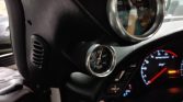 Instrumentation includes a 50th Anniversary–branded speedometer and tachometer along with gauges for coolant temperature, oil pressure, voltage, and fuel level. Aftermarket gauges for boost pressure, fuel pressure, and air/fuel ratio are installed on the A-pillar and center console. The digital odometer has 1,900 miles.