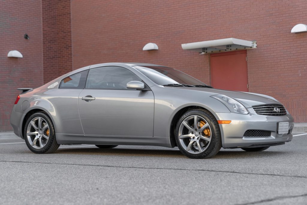 This 2003 Infiniti G35 coupe was purchased new by the seller from Infiniti of Denver, Colorado, in July 2003 and is finished in Diamond Graphite over black leather. Powering the car is a 3.5-liter V6 paired with a six-speed manual transmission, and features include forged 18″ wheels, a limited-slip differential, power-adjustable and heated front seats, automatic climate control, and a Bose sound system.