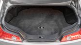 Seating surfaces are upholstered in black leather with a matching dashboard, carpets, and door panels. Amenities include power-adjustable heated front seats with Infiniti embroidery, an eight-speaker Bose CD/cassette sound system, automatic climate control, Infiniti-branded floor mats, and power accessories.