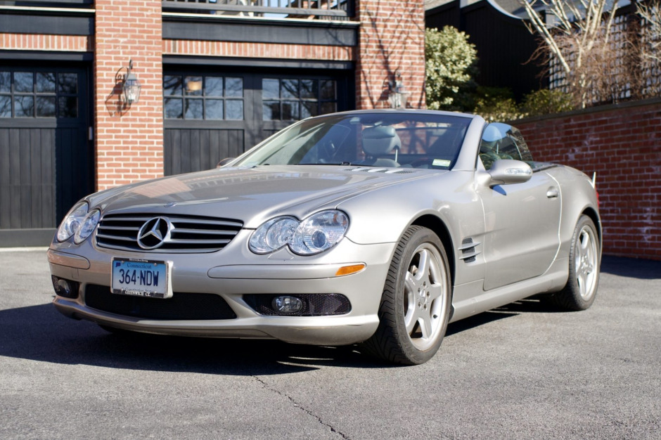 This 2003 Mercedes-Benz SL500 was purchased new by the seller from Mercedes-Benz of Greenwich in Connecticut, and it now has 20k miles. The car is finished in Cubanite Silver Metallic over Charcoal leather and is powered by a 5.0-liter V8 paired with a five-speed automatic transmission. Additional equipment includes the AMG styling package, COMAND with navigation, an Active Body Control suspension, a retractable hardtop, a wind deflector, bi-xenon headlights, and heated and power-adjustable seats. The parking brake handle was reportedly replaced and a fluid service was performed in preparation for the sale. This R230 is now offered with a clean Carfax report and a clean Connecticut title in the seller’s name.