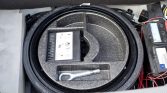 AMG 18″ five-spoke alloy wheels wear staggered-width Michelin Pilot Sport tires measuring 255/40 up front and 285/35 out back. The car is equipped with an Active Body Control suspension, and stopping power is provided by four-wheel disc brakes with cross-drilled front rotors.