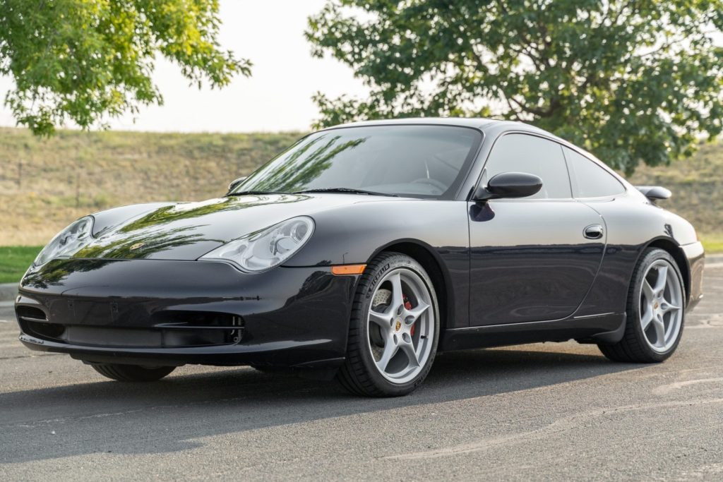 This 2003 Porsche 911 Carrera coupe was first registered in Oregon and spent time in Washington State and Colorado before being acquired by the seller in 2018. The car is finished in Midnight Blue Metallic over Graphite Grey leather and is powered by a 3.6-liter flat-six paired with a six-speed manual transaxle. Equipment includes automatic climate control, cruise control, xenon headlights, a sunroof, power-adjustable and heated front seats, and a Porsche CD stereo.