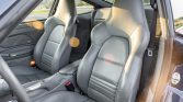 The cabin features seating surfaces upholstered in Graphite Grey leather with matching carpets and trim. Equipment includes automatic climate control, cruise control, power-adjustable and heated front seats, a factory CD stereo, and Porsche-branded floor mats.
