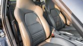 Silver 18″ Carrera five-spoke wheels feature painted Porsche-crested caps and are wrapped in Michelin Pilot Sport 4S tires measuring 225/40 in the front and 285/30 in the rear. The car features Porsche Stability Management, and braking is handled by red calipers with Porsche lettering paired with drilled rotors at all four corners.