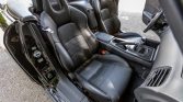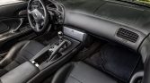 The cabin features bolstered seats upholstered in black leather along with matching carpets and trim. S2000-branded floor mats line the footwells, and interior equipment includes aluminum pedals, air conditioning, a CD stereo, cruise control, and push-button ignition.
