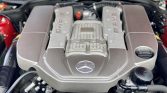 The body is finished in Mars Red Metallic (590U) and features a retractable roof. Equipment includes AMG-styled bumpers and side skirts, bi-xenon headlights, parking sensors, and quad exhaust tips.