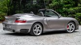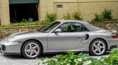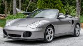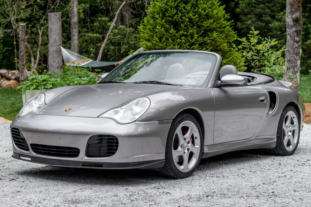 This 2004 Porsche 911 Turbo cabriolet is finished in Meridian Metallic over Graphite Gray full leather and is powered by a twin-turbocharged 3.6L flat-six paired with a six-speed manual transaxle and all-wheel drive. Equipment includes a power-retractable convertible top, a hard top, 18″ Turbo Twist wheels, power-adjustable front seats, and automatic climate control, while modifications reportedly consist of a GBox shift detent, braided clutch line and helper spring, aluminum diverter valves, and Evolution Motorsports Stage 1 clutch and pressure plate, ECU tune, GT2 clutch master and slave kit conversion kit, billet shift linkage, V-Flow air box, and mass air flow conversion. The car was first registered in Texas and was acquired in 2013 by the seller, who has added 12k of the 32k miles.