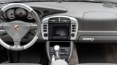 Staggered-width 18″ wheels wear Turbo center caps and are mounted with 225/40 and 295/30 Pirelli P Zero Rosso tires. Braking is handled by four-wheel discs with red multi-piston calipers.
