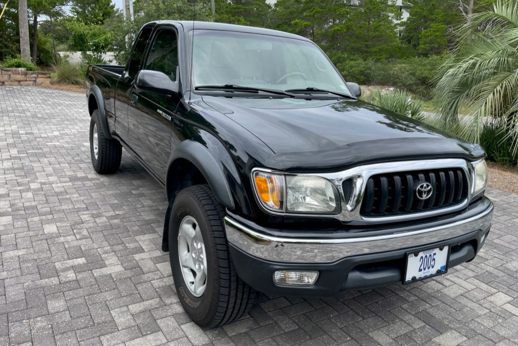 This 2004 Toyota Tacoma SR5 is an extended-cab 4×2 pickup that spent time in California and Illinois before being acquired by the seller in 2016. It is finished in black over gray cloth and powered by a 2.7-liter inline-four paired with a four-speed automatic transmission. Additional equipment includes 16″ alloy wheels, a bedliner, air conditioning, a factory CD/cassette stereo, and a sliding glass rear window.