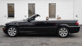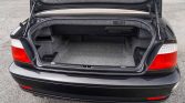 The car is finished in Jet Black (668) with a matching power-operated convertible top. Additional exterior equipment includes front fog lamps, rain-sensing wipers, and twin exhaust outlets. The antenna is broken, and a replacement antenna is included in the sale.