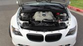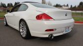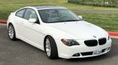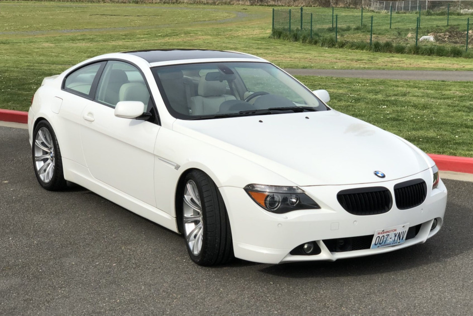 This 2005 BMW 645Ci coupe is powered by a 4.4-liter V8 paired with a six-speed manual transmission and finished in Alpine White over Cream Beige leather. Factory equipment includes a glass sunroof, parking sensors, adaptive xenon headlights, power-adjustable heated seats, a heated steering wheel, adaptive cruise control, Active Steering, and iDrive with navigation. Modifications include a Britalman exhaust and 19″ Style 166 wheels along with brake and suspension updates. Work under current ownership reportedly included replacing the clutch, flywheel, water pump, coolant reservoir, alternator, brake booster, and brake master cylinder along with fluid changes. The car was first registered in Florida and later moved to Washington state, where it was acquired by the seller in 2010.