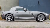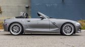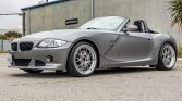 This 2005 BMW Z4 3.0i roadster is finished in Sterling Gray Metallic over black and powered by a 3.0-liter inline-six paired with a six-speed manual transmission. Factory equipment includes the Premium and Sport packages, a power-retractable black soft top, a body-color hardtop, and xenon headlights, while modifications include a Remus exhaust, an aFe cold-air intake, forged 19″ BBS LM-R wheels, StopTech and Brembo brakes, TC Kline coilover suspension, Recaro Sportster seats, and an AC Schnitzer strut tower brace, sway bars, steering wheel, carbon-fiber trim, and aluminum pedals. The car has been registered in California since new and was acquired by the seller in April 2017.