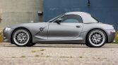 This 2005 BMW Z4 3.0i roadster is finished in Sterling Gray Metallic over black and powered by a 3.0-liter inline-six paired with a six-speed manual transmission. Factory equipment includes the Premium and Sport packages, a power-retractable black soft top, a body-color hardtop, and xenon headlights, while modifications include a Remus exhaust, an aFe cold-air intake, forged 19″ BBS LM-R wheels, StopTech and Brembo brakes, TC Kline coilover suspension, Recaro Sportster seats, and an AC Schnitzer strut tower…