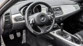 The cockpit features black leather and Alcantara Recaro Sportster CS seats mounted via Macht Schnell aluminum floor mounts. AC Schnitzer floor mats and silver carbon-fiber dashboard and center console trim have been added, while factory amenities include automatic climate control, rain-sensing windshield wipers, cruise control, and a BMW Business CD stereo. Other AC Schnitzer equipment includes the shift knob, parking brake handle, and aluminum pedals.